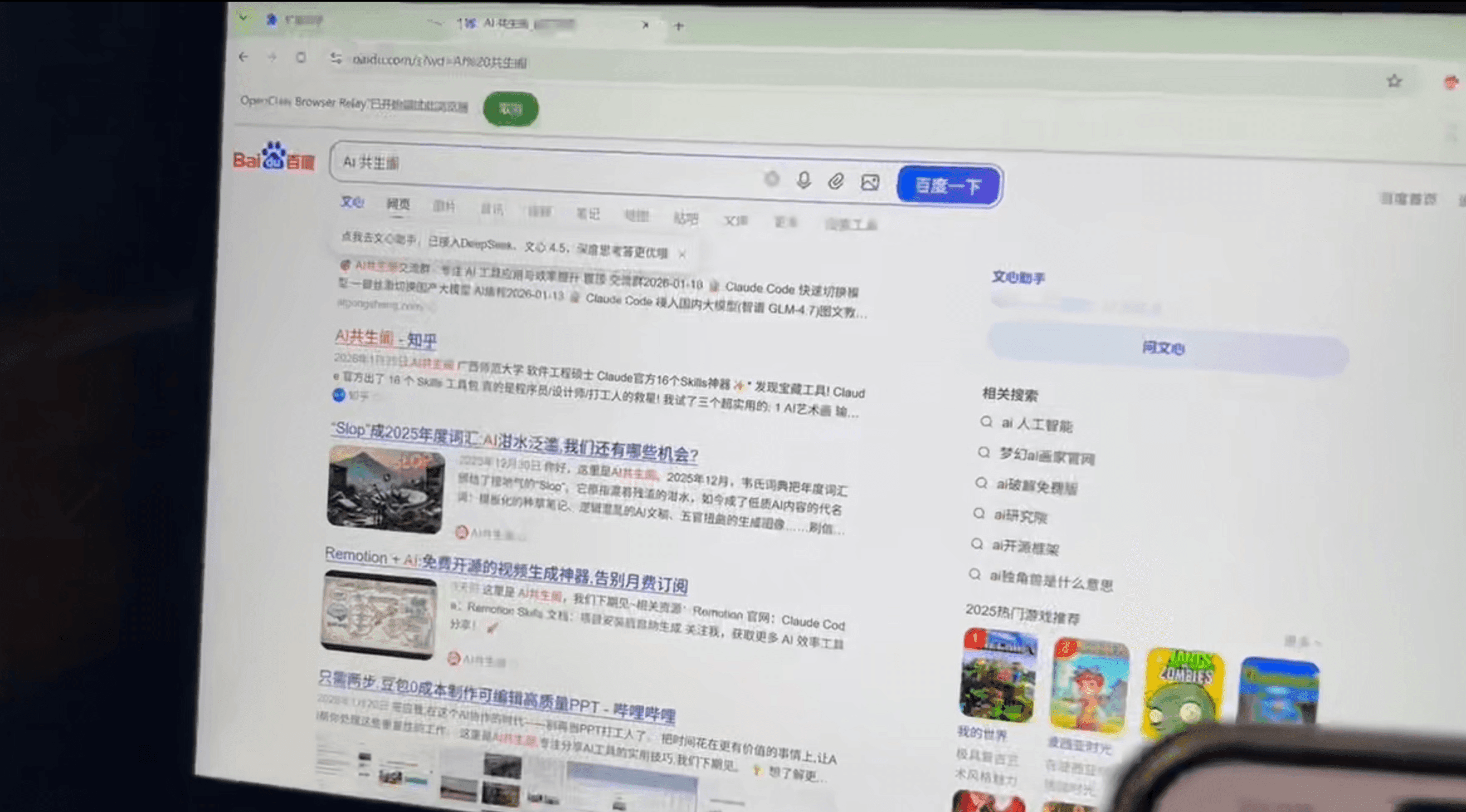 测试指令: 帮我打开百度,搜索"AI共生阁"