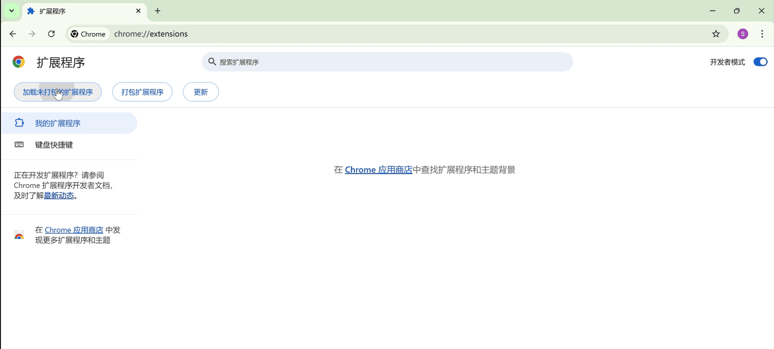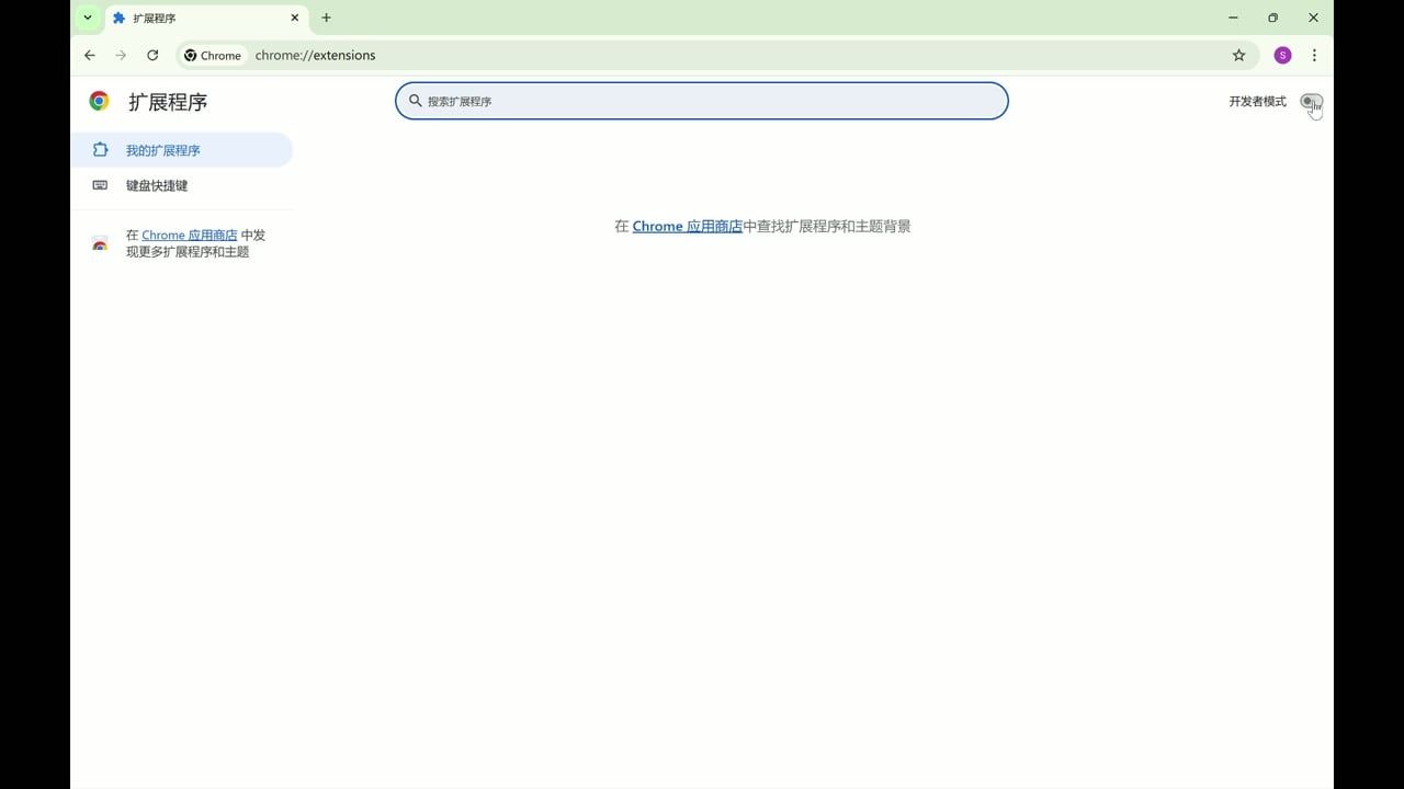 点击右上角的「开发者模式」开关,使其变为开启状态: