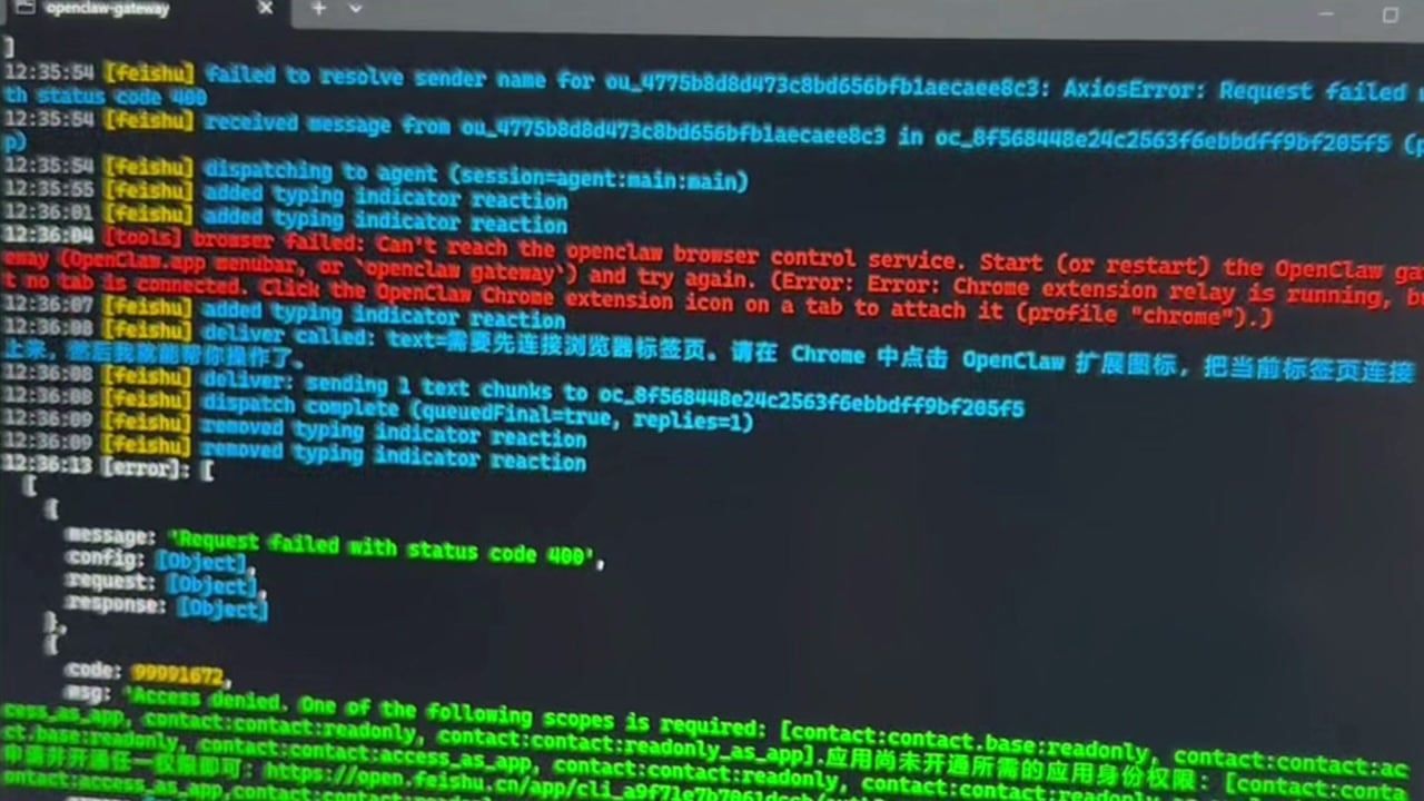 使用 OpenClaw 时,想让 AI 通过飞书应用帮我们操作浏览器,结果弹出这样的错误提示: