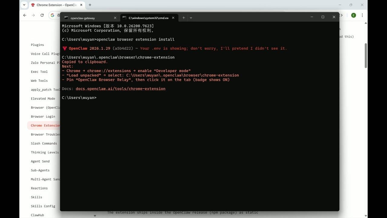 插件安装完成后,需要重启一下 OpenClaw 网关使配置生效: